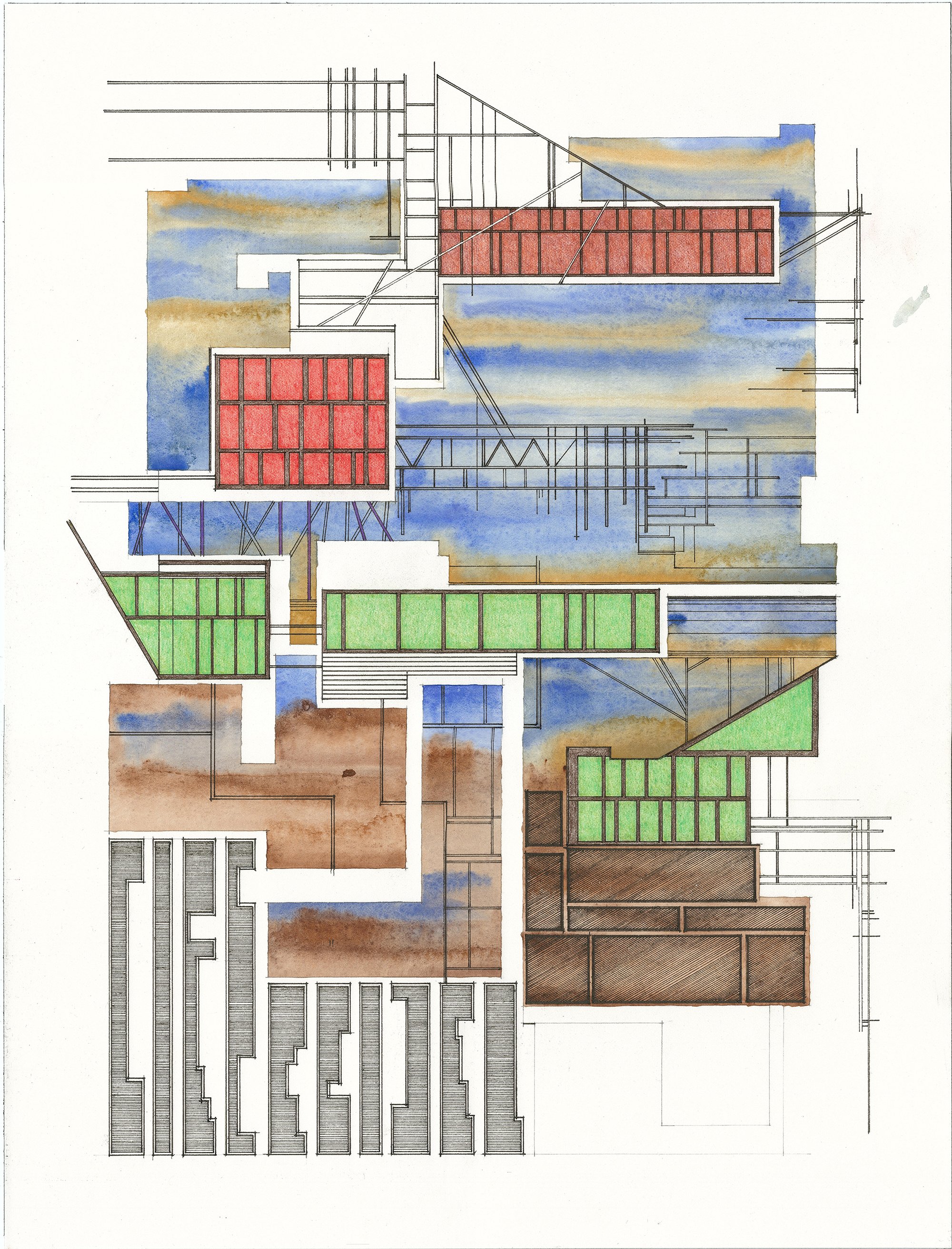 original artwork 16"x12" watercolor pencil ink and color pencil on paper 2016 signed, numbered, dated "12.30.16" in pencil on the verso. monogrammed "JWCJ" in pencil on front.